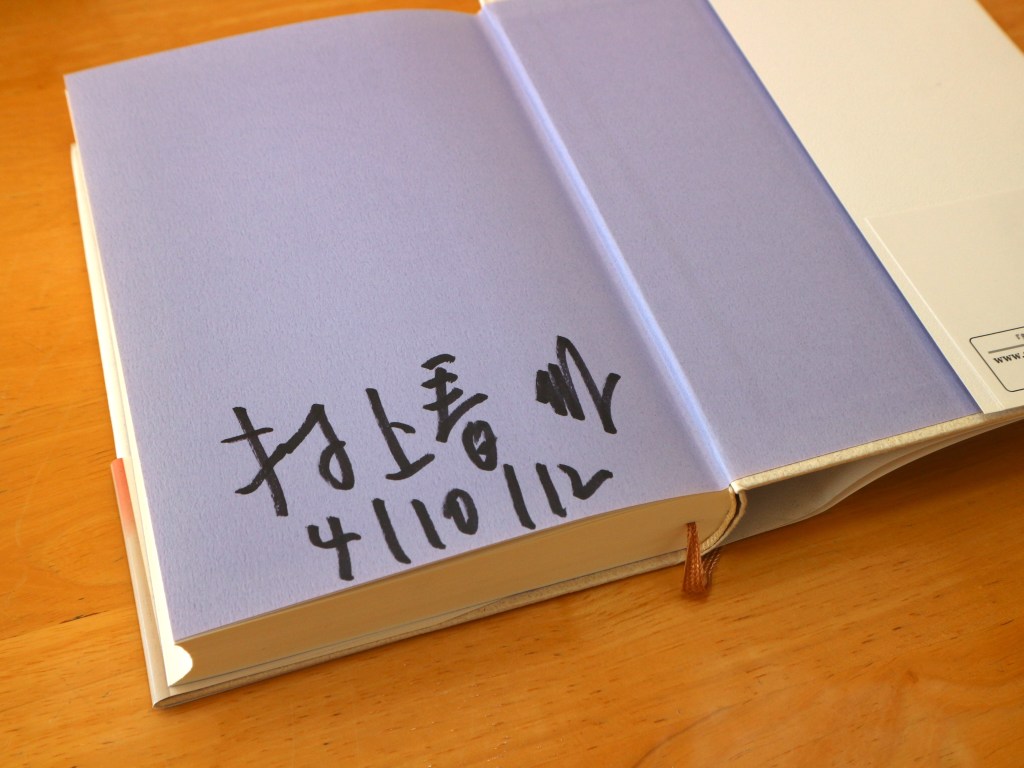 2012年にハワイ大学で講演会があった際には、講演と朗読を聞いた後に2時間近く列に並びましたが、1Q84 BOOK3にしっかりとサインまでもらいました。長蛇の列になったサイン会ですが、並んだ人は全員村上さんの直筆サインをもらうことができました。そして、アメリカ人学生が持ってきたボロボロのペーパーバックにも丁寧にサインなさっていた村上さんがとても印象的でした。