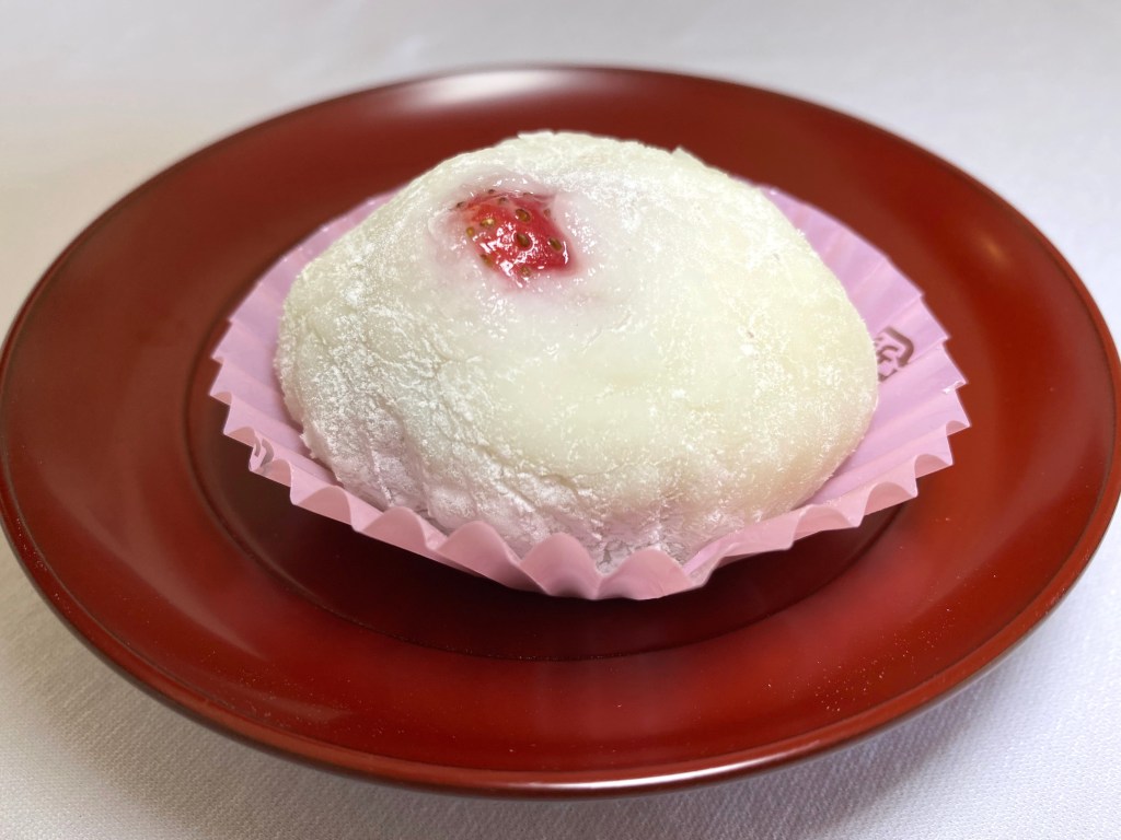 今日は、いちご大福まで買ってしまいました。ジューシーで酸味のあるいちごとほんのりと甘い皮が美味しかったです。柔らかいトロンとした皮でした。