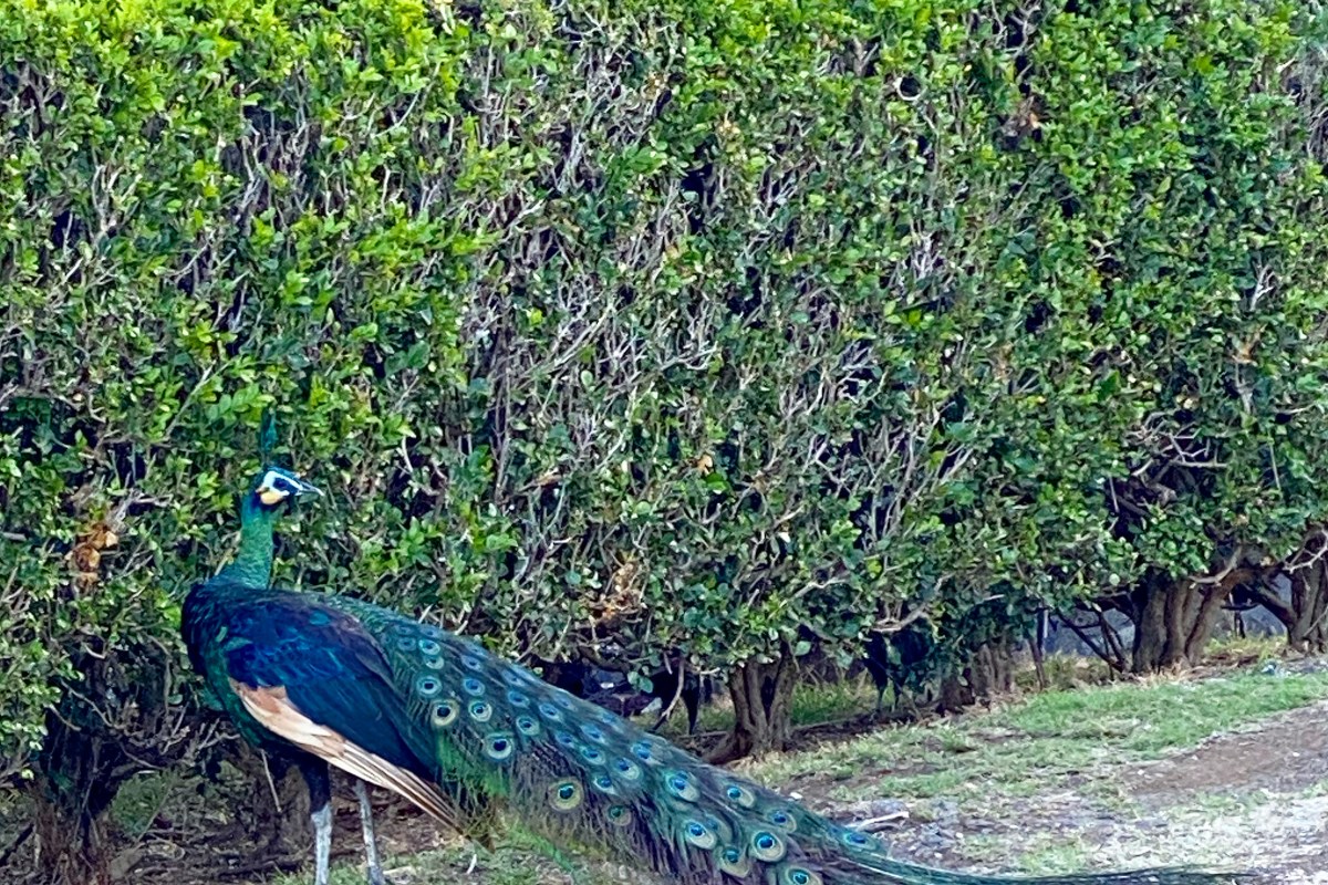 結局、ペットの孔雀だったのか、野生の孔雀だったのかはわかりませんでしたが、朝から孔雀を間近に見ることができて、嬉しい日となりました。今日は何かいいことあるかな。